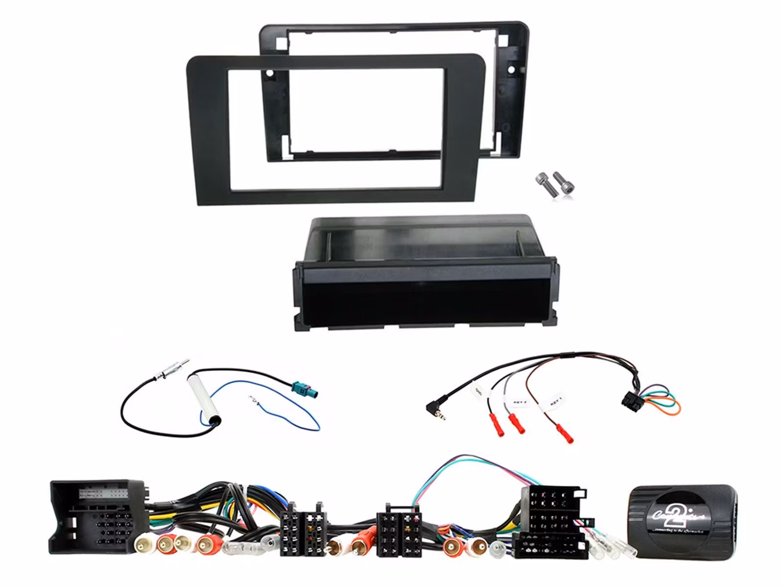 • Levereras med svart enkel DIN-ram, CAN-Bus rattstyrningskontroll (Quadlock & ISO-vävstolar), FAKRA-antennadapter och universell patchlead.