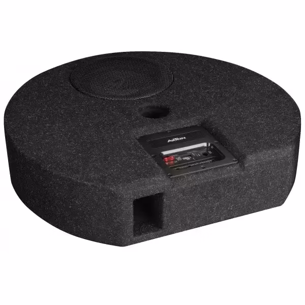 ATB20RXF är den runda, extra platta subwoofern för reservdäcksbrunnen. Med en höjd på bara 125 mm passar denna bas till och med in i nästan alla nödhjulsbrunnar eller mellangolv av nuvarande trunkdesign. Den genomtänkta skåpkonstruktionen kombinerar stabilitet, minimalt utrymmesbehov och låg vikt i en kraftfull produktdesign med imponerande baskvalitet.