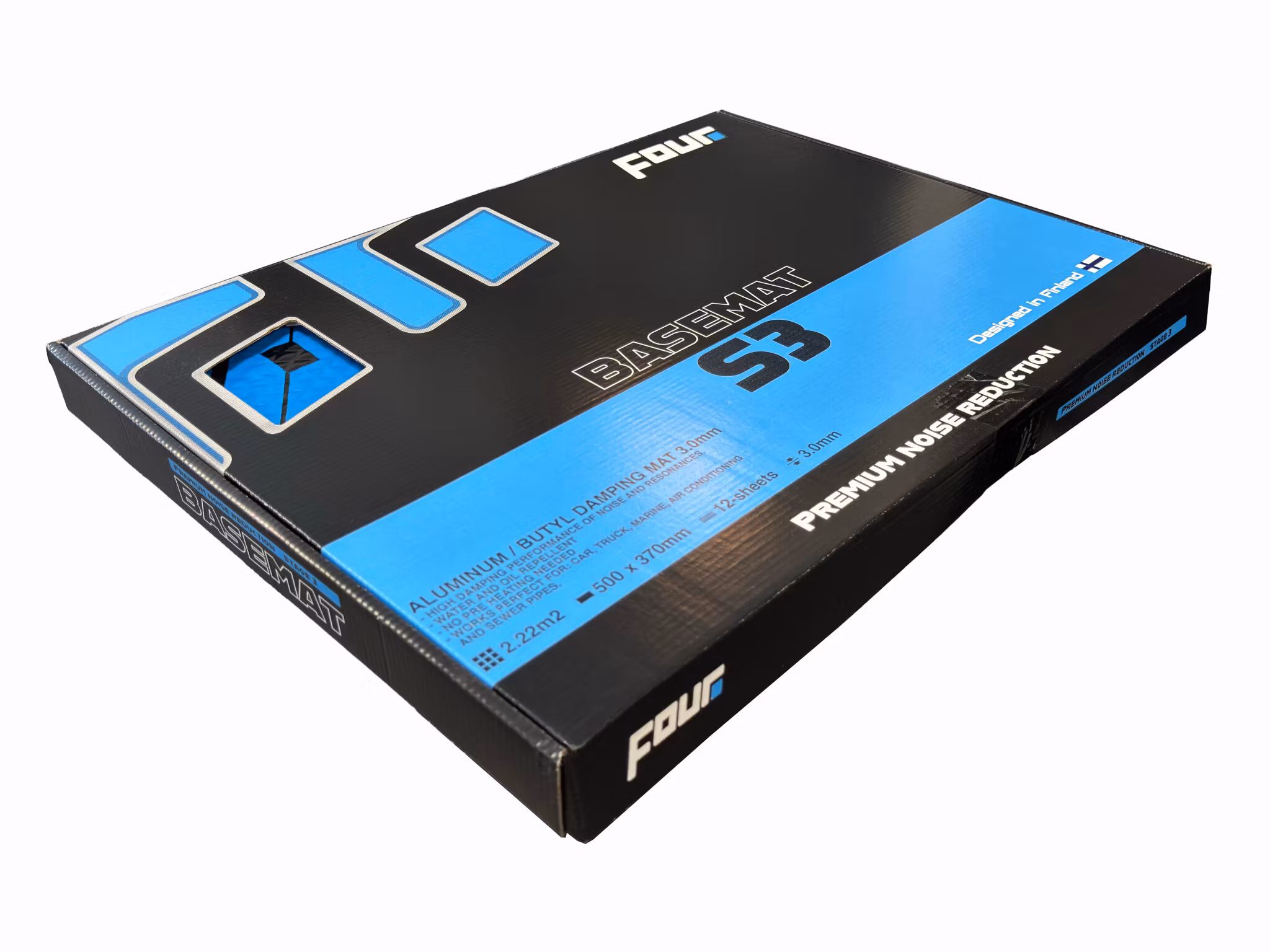 - • Thickness: 3,0 mm - MODELSPEC: Vaimennusmatot - TECHNICALDATA: - Aluminum / butyl dapming mat 3,0 - High damping performance of noise and resonances - Water and oil repellent - No pre heating needed - Works perfect for: car, truck, marine, air conditioning and sewer pipes. Size per sheet: 500 X 370 mm thickness: 3,0 mm 12 sheets per pagkage Coverage: 2.22m2 Foil Thickness (um) 150 Weight / m²: 5 kg