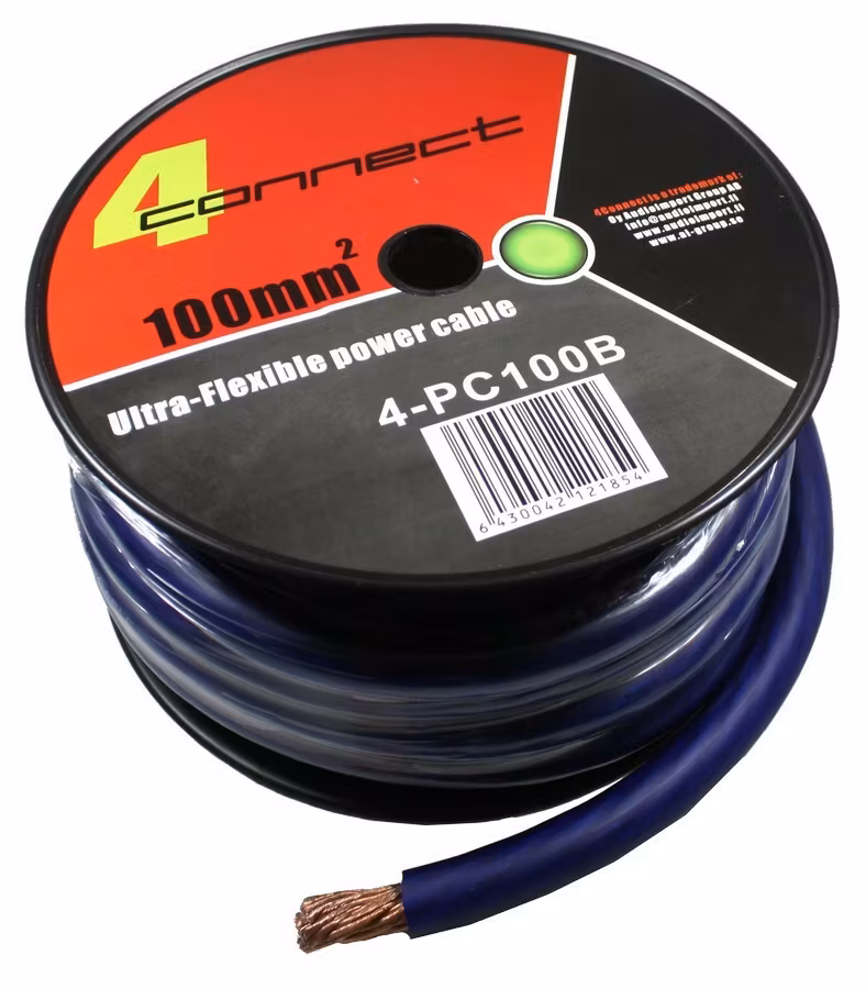 FOUR Connect 4-PC100B power cable 100mm2 blue 12m 2,311.26 NOK BUY Share Information - 100mm2 - CCA-cable - silicon based rubber insulation - very flexible - blue - 12m spool.