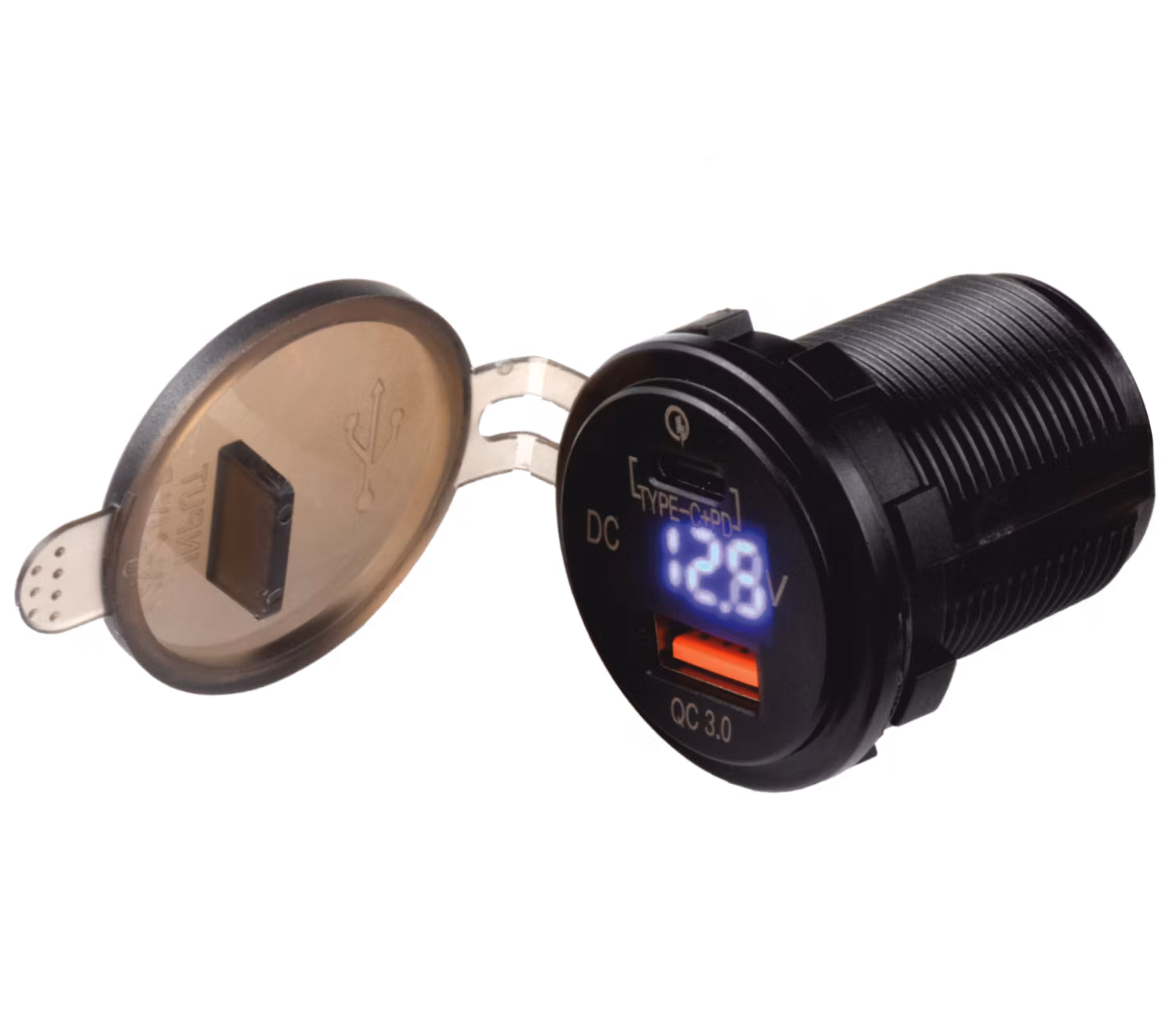 FOUR Connect 4-600162 waterprof USB-charger with voltage display 321.43 NOK BUY Share Information Output: 1 x 3A / 2 x 1.5A Asennusreikä/Mounting hole: 29mm Käyttöjännite/ operating voltage: 12/24Vdc.