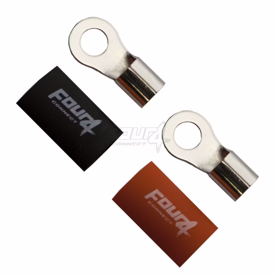 FOUR Connect 4-690918 M8 ring terminal 20mm², 1x red ja 1x black 39 kr KÖP Share Information - ring terminal 1 pc black and 1 pc red - to M8 bolt - for 20 mm2 cables - 100% copper - rhodium plated - including shrink tube.