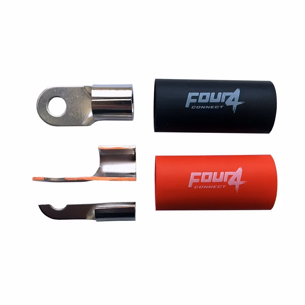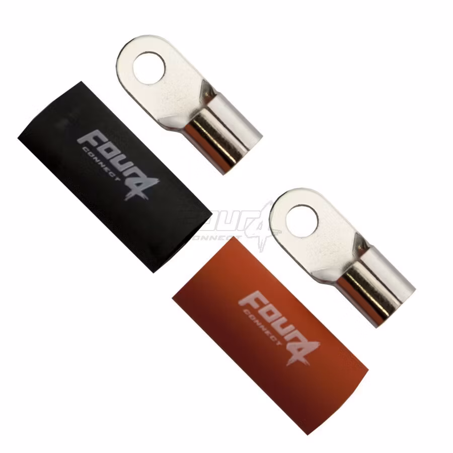FOUR Connect 4-690920 M8 ring terminal 50mm², 1x red ja 1x black 6,30 € KÖP Share Information - ring terminal 1 pcs black and 1 pcs red - to M8 bolt - for 50 mm2 cables - 100% copper - rhodium plated - including shrink tube.