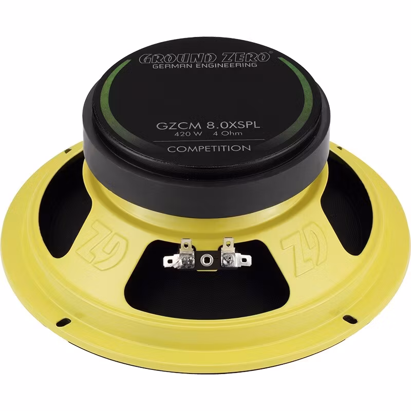 GZCM 8.0XSPL är ett 8-tums high-power midrange-element från Ground Zeros Competition-serie. Utrustad med Klippel®-optimerad fiberförstärkt pappersmembran, resonansfri stålpressad korg och 30 mm CCA-talspole. UV-resistent och vattenavvisande konstruktion för extrem SPL och hållbarhet i stuntväggar och PA-arrays.