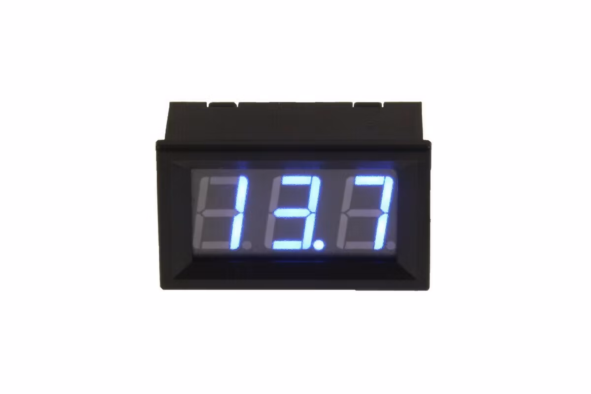 - • Measurement area 6-30 Volts - MODELSPEC: Jännitenäytöt - TECHNICALDATA: Digital Voltmeter Display colour blue Measurement area 6-30 Volts Operating temperature -20 - + 65 celsius You can calibrate unit to show exactly correct voltage Mounting hole when flush mounted 26x45 mm Measurements surface mounted 48x29x22 mm Connection cable length 15 cm.