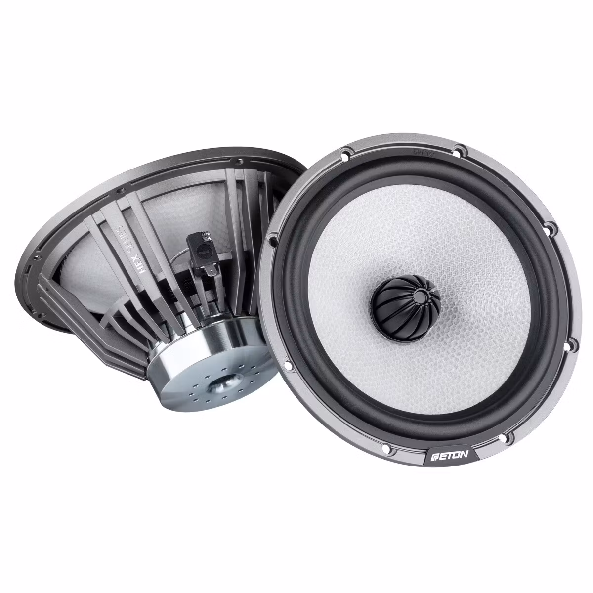 • Setet består av 165 mm (6,5") gjutna aluminiumkorgar som är extremt vridstyva och försedda med den nyutvecklade HEXACONE-membrantekniken.