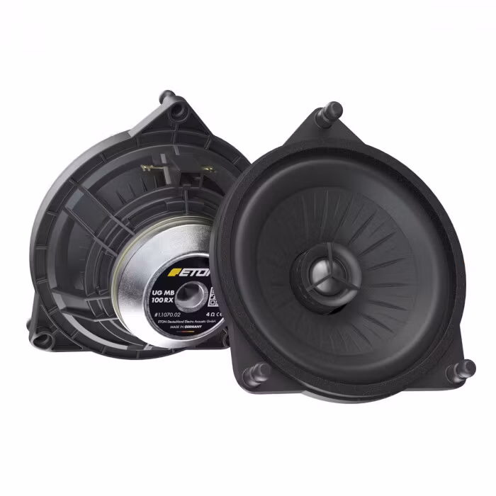 • ETON MB100RX 10 cm 2-Way Coax Bakdörr Mercedes • Stark neodymmagnet och räfflat pappersmembran med integrerad 15 mm aluminiumdiskant, inklusive korsning av diskantkabel. • Utveckling och tillverkning Tillverkad i Tyskland. • Se bifogad fil för kompatibilitet