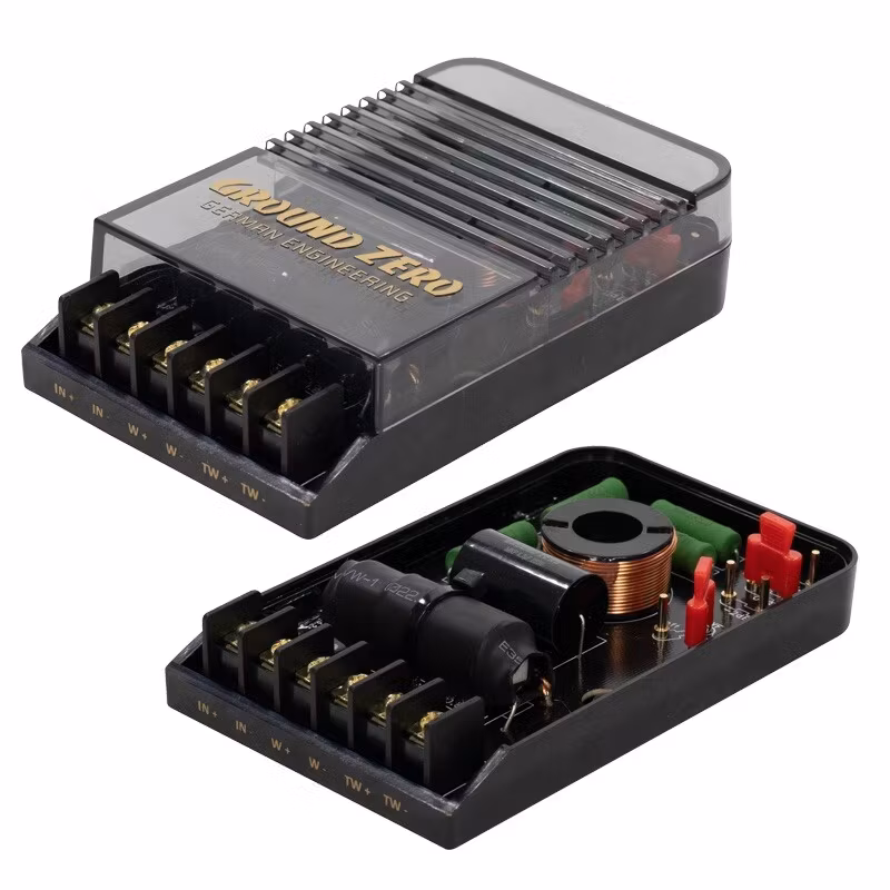 The included crossover GZC X165.2 is specifically designed for this series and contains very high-quality components. The crossover has separate adjustment options for both the midwoofer (low/high) and the tweeter (-2dB, 0dB, +2dB).