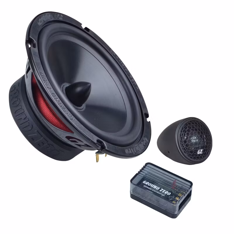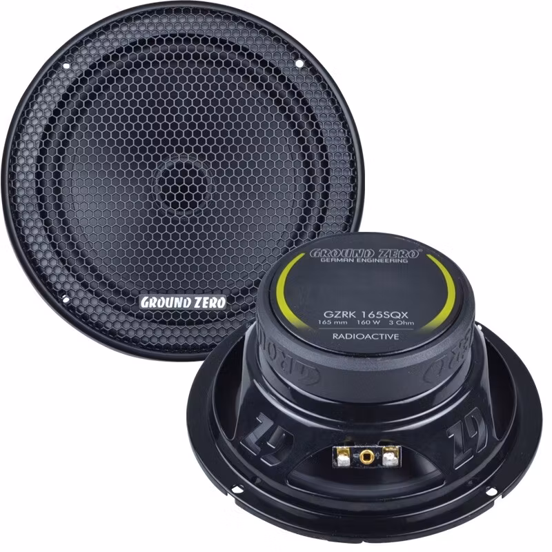 6.5″ 2-way SQ component speaker system with black anodized aluminum cone and 3-ohm impedance