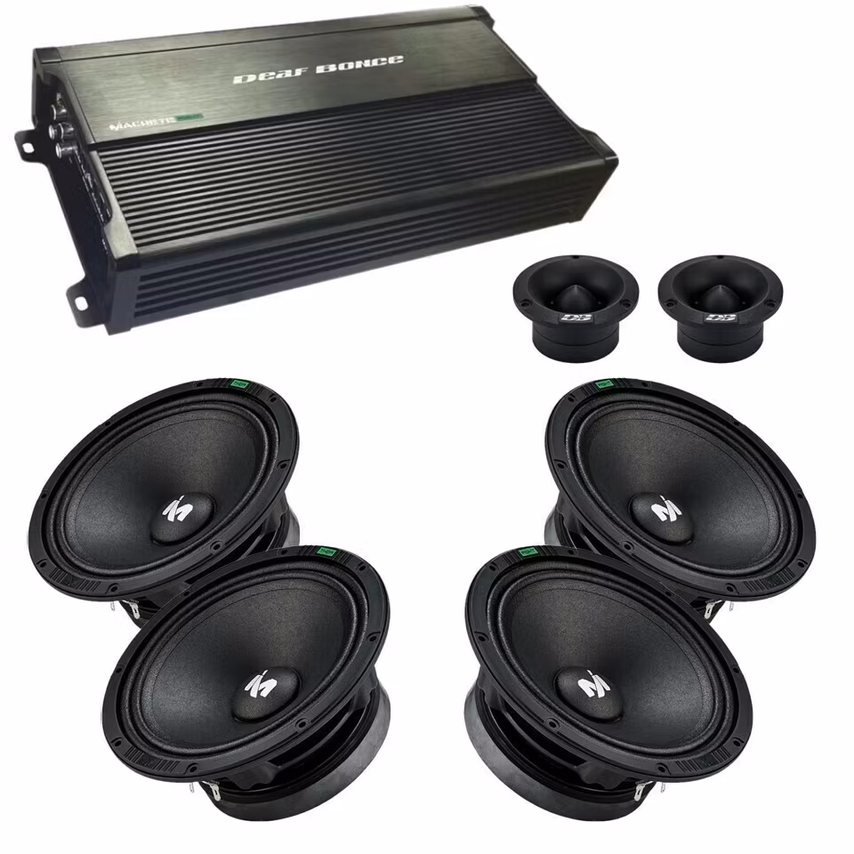 Machete Fight 60 Kit är det perfekta valet för dig som söker ett ljudsystem med kraftfull midbass och extremt tydlig diskant. Med två par Machete Fight 60 midbass-högtalare och ett par Deaf Bonce AT-32 diskanter får du en ljudupplevelse med djup, tryck och exceptionell detaljrikedom.