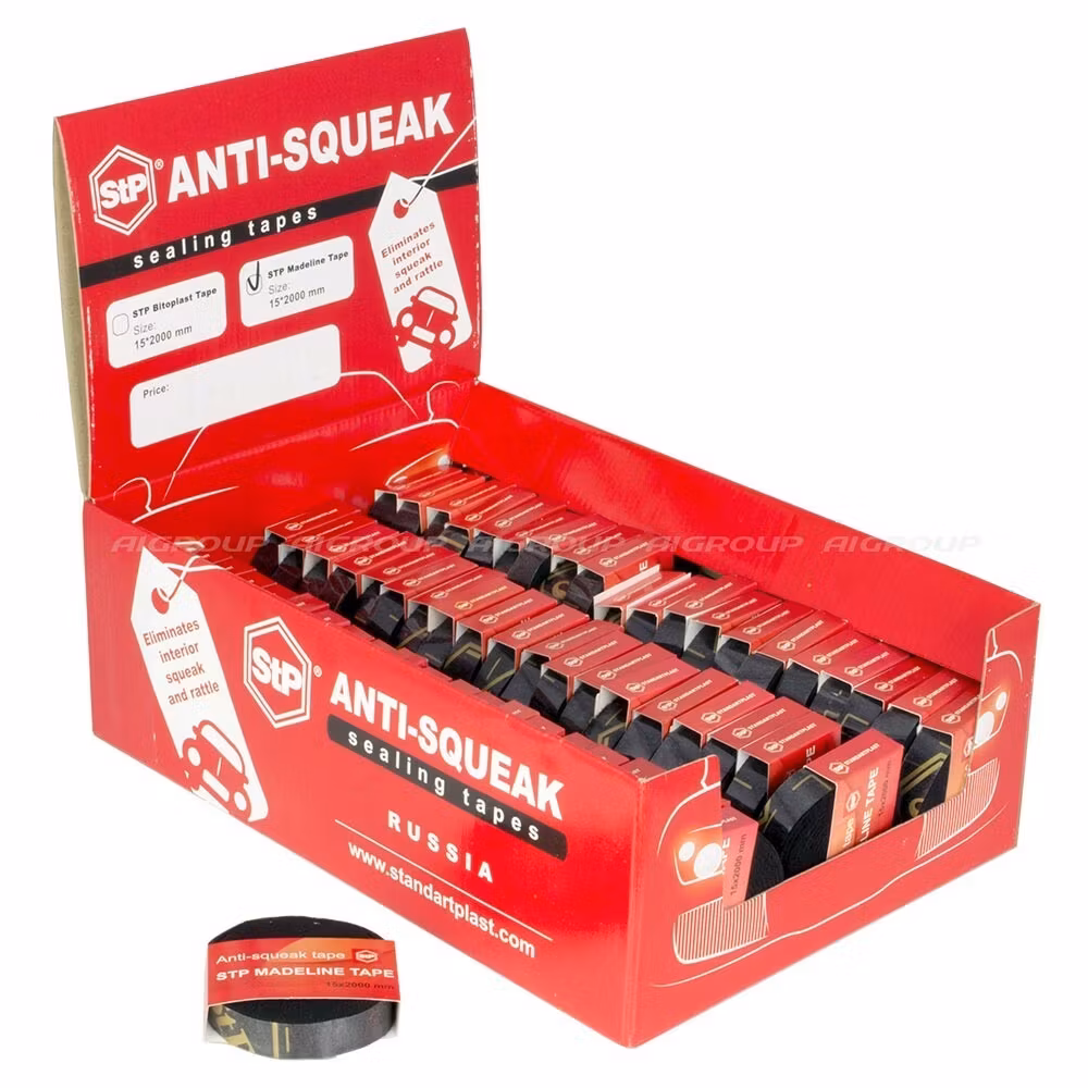 STP Madeline Tape 60pcs -pack 1 250 kr Produkten är tyvärr slut i lager. :( Dela Information STP Madeline Tape is a antisquek tape. Self adhesive carpet tape that is assembled between surfaces that make noise.