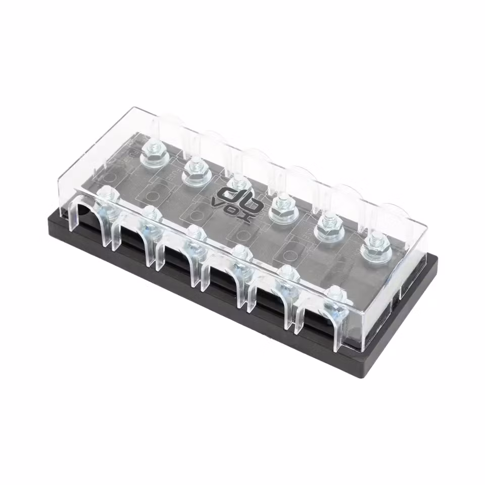 dBVOXMFM6 423.98 NOK KÖP Dela Information Säkringshållare 6xMegaFuse för kraftiga installationer.Ansluts med ringkabelskoFunkar upp ill 120mm² kabelM8 bult