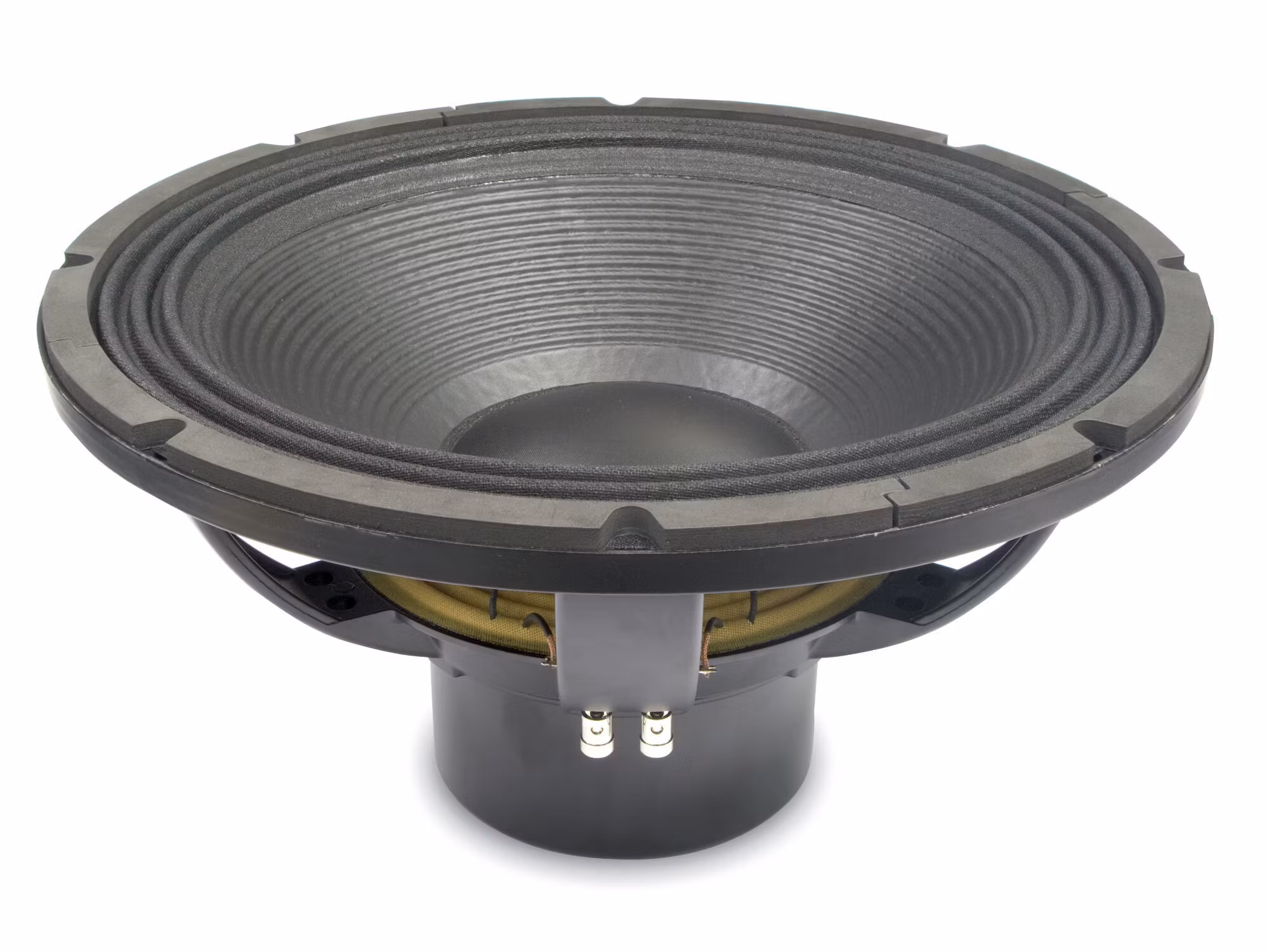 Eighteen Sound 18NLW9600C - 8 är en professionell 18" neodym - woofer utvecklad för extrema SPL - applikationer i PA - system och subbaslösningar. Med 100 mm talspole, avancerad kylning och väderskyddad kon erbjuder den hög känslighet, låg distorsion och lång livslängd även vid kontinuerlig belastning. Idealisk för touring, installationer och system där djup bas och maximal SPL krävs. Tekniska data: - Storlek: 18" (ytterdiameter 460 mm, infällnadsdiameter 416 mm, djup 210 mm) - Impedans: 8 ohm - Känslighet: 98 dB (1 W / 1 m) - Märkeffekt: 1600 W AES - Programeffekt: 3200 W - Frekvensomfång: 30 - 2500 Hz - Talspole: 100 mm (4") ISV Interleaved Sandwich Voice Coil - Magnet: Neodym - Vikt: 10.0 kg Thiele/Small - parametrar: - Fs: 30 Hz Qts: 0.22 Qes: 0.23 Qms: 6.2 Re: 5.3 ohm Mms: 210 g Sd: 1225 cm² Xmax: ±9.5 mm Baffelutskärning: 416 mm Bultcirkeldiameter: 440 mm Totaldjup: 210 mm - Fs: 30 Hz - Qts: 0.22 - Qes: 0.23 - Qms: 6.2 - Re: 5.3 ohm - Mms: 210 g - Sd: 1225 cm² - Xmax: ±9.5 mm - Baffelutskärning: 416 mm - Bultcirkeldiameter: 440 mm - Totaldjup: 210 mm Rekommenderad användning: - Subbas i professionella PA - system - Kabinett: Basreflex, bandpass eller horn, 120 - 200 dm³ - Delningsriktvärden: HP 30 - 35 Hz, LP upp till 1 - 1.2 kHz - Avsedd för hög SPL och robust långtidsprestanda Artikelnr: - Tillverkare: Eighteen Sound - Modell: 18NLW9600C - 8 - Kategori: Woofer / LF driver