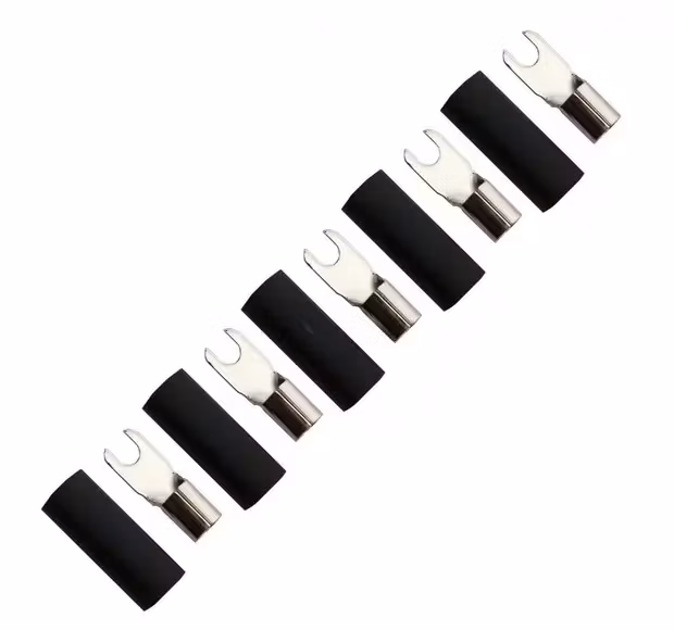 4Connect gaffelkontakter har krymprör av god kvalitet som isolator istället för vanliga gummi- eller plasthylsor. Krymprör skyddar anslutningen mycket bättre mot oxidation än lösa plast- eller gummihylsor. Kontaktdon är rodierade för att säkra anslutningen i flera år. Detta paket innehåller 5 st svarta kontaktdon som passar till M4-bulten och tar 10 mm2-kabel.
