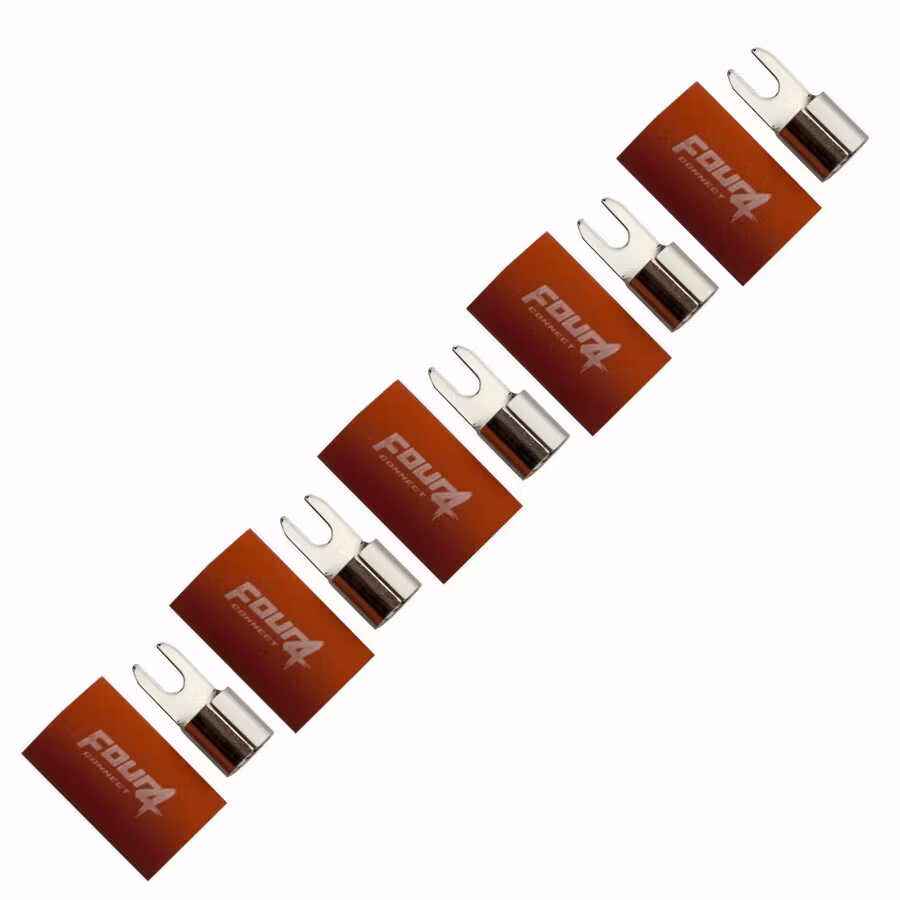 - • 100% copper - MODELSPEC: Haarukkaliittimet - TECHNICALDATA: - fork connector 5 pcs red - to M4 bolt - for 20 mm2 cables - 100% copper - rhodium plated - including shrink tube.