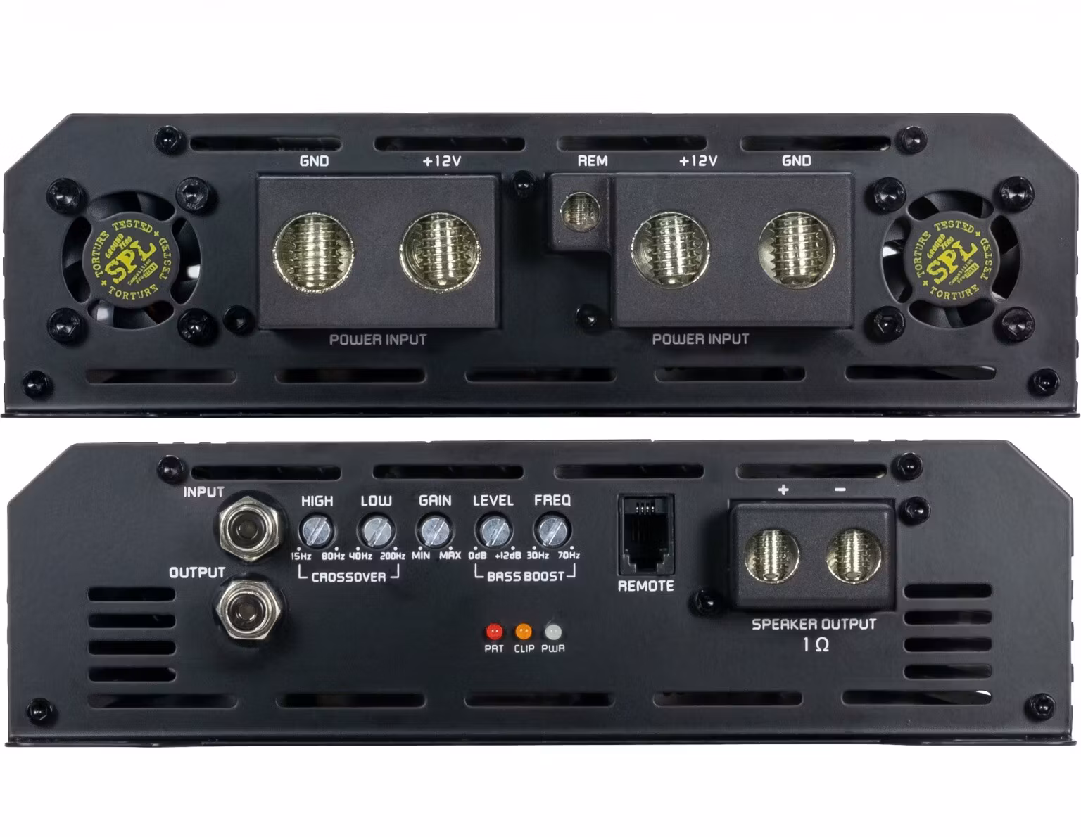 1-kanals SPL-förstärkare med extrem uteffekt och klass D-teknik. Stabil vid 1 Ohm och konstruerad för tävlingsbyggen där maximal kontroll och ljudtryck krävs.